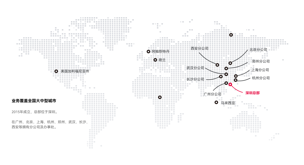 在广州、北京、上海、杭州、郑州、武汉、长沙、西安等拥有分公司及办事处。